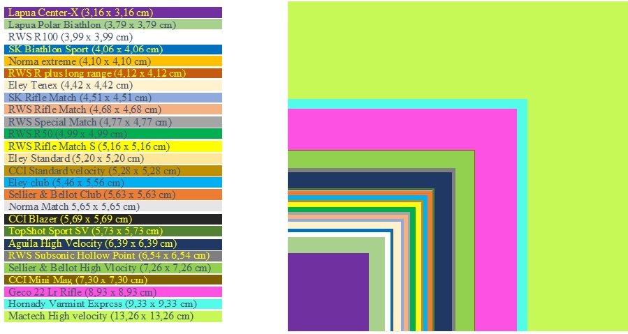 On trouve 3 marques pour les 10 premier : Lapua, RWS et Eley, deux Allemand et un Anglais